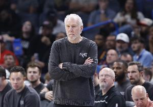 体育资讯4月18日讯 今天上午,波波维奇步履蹒跚重返马刺训练场。